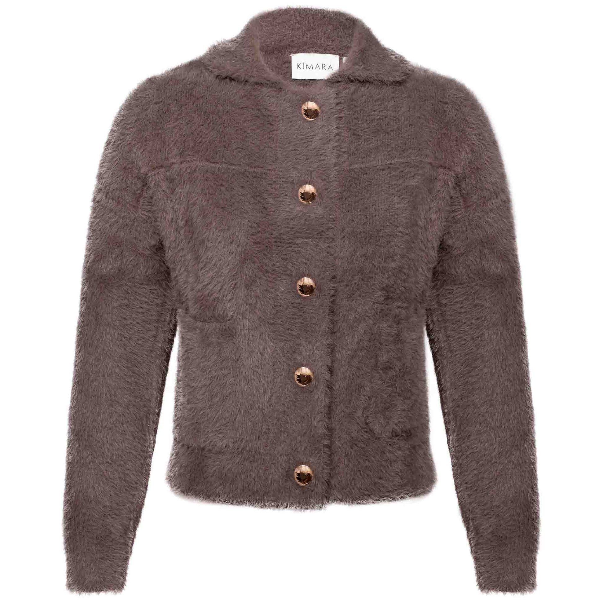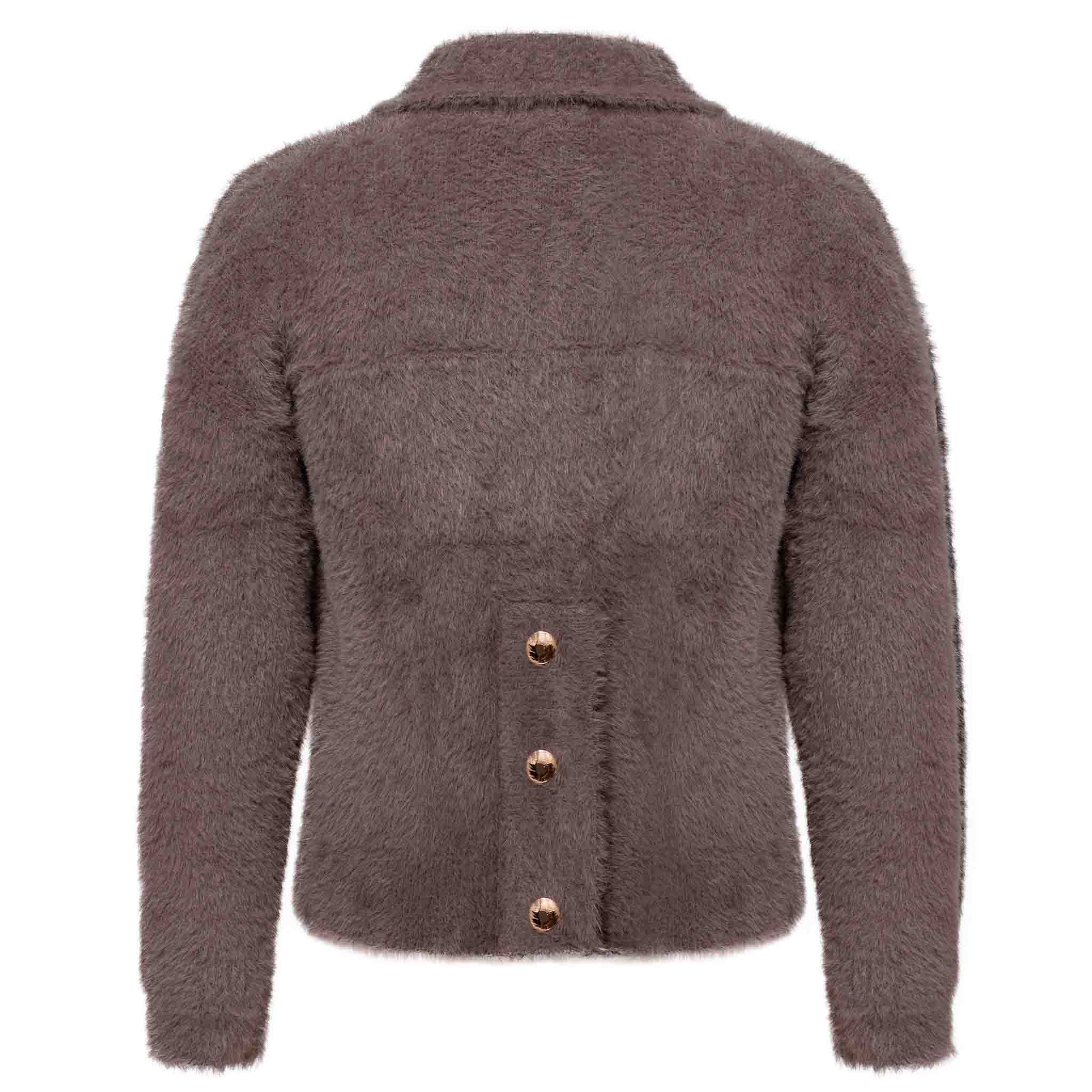 Kenmerken: ✦ Lange mouw ✦ Opstaand kraagje ✦ Klepzakken voorpand ✦ Sluit met goudkleurige knopen ✦ Achterzijde met goudkleurige knopen ✦ Gemaakt van zware fluffy breisel