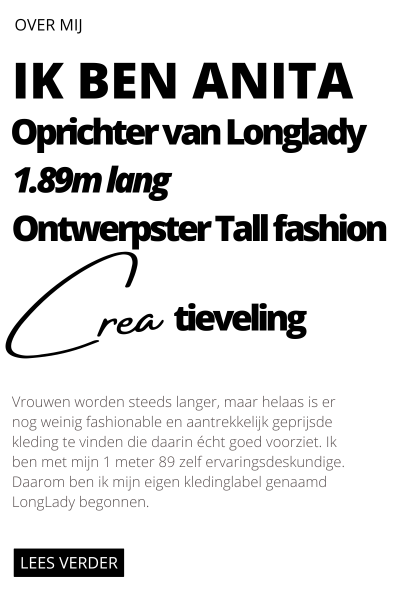 Welkom bij Longlady, hét Nederlandse merk gespecialiseerd in Tall fashion voor vrouwen vanaf 1.78 meter. Wij begrijpen als geen ander hoe lastig het kan zijn om modieuze kleding te vinden die écht past bij jouw lengte. Daarom ontwerpen we een veelzijdige collectie speciaal voor lange vrouwen – van basics tot trendy items, allemaal met een perfecte pasvorm en in lengtematen 36" en 38".